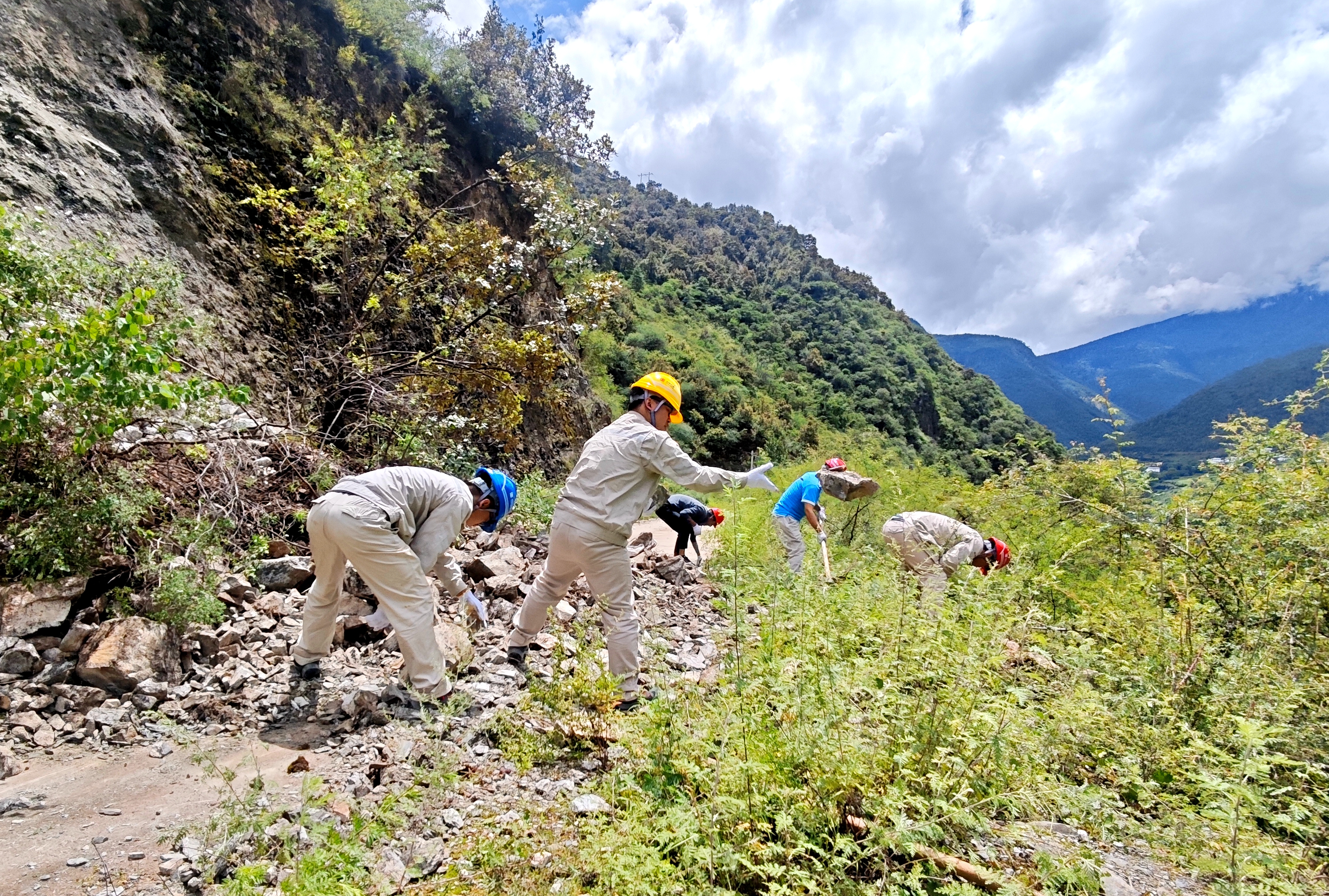 上游来水不断增加,大坝水位持续增高,岗一水电厂迅速启动应急预案,一支由运行和维护人员组成的“抢险突击队”火速成立。突击队每天两次徒步穿越险象环生的滑坡区,冒着持续降雨和次生灾害的风险,艰难往返于生活区与大坝之间。4公里的路程,每次上行需耗时约45分钟。泥泞湿滑的山路上,每一步都是意志与体力的考验。正是他们顽强的意志,坚定的脚步,踏出了一条守护大坝和下游安全的“生命通道”,确保每日闸门操作的精准执行与水情信息的及时报送,真正践行“缺氧不缺精神,海拔高境界更高”的铮铮誓言。