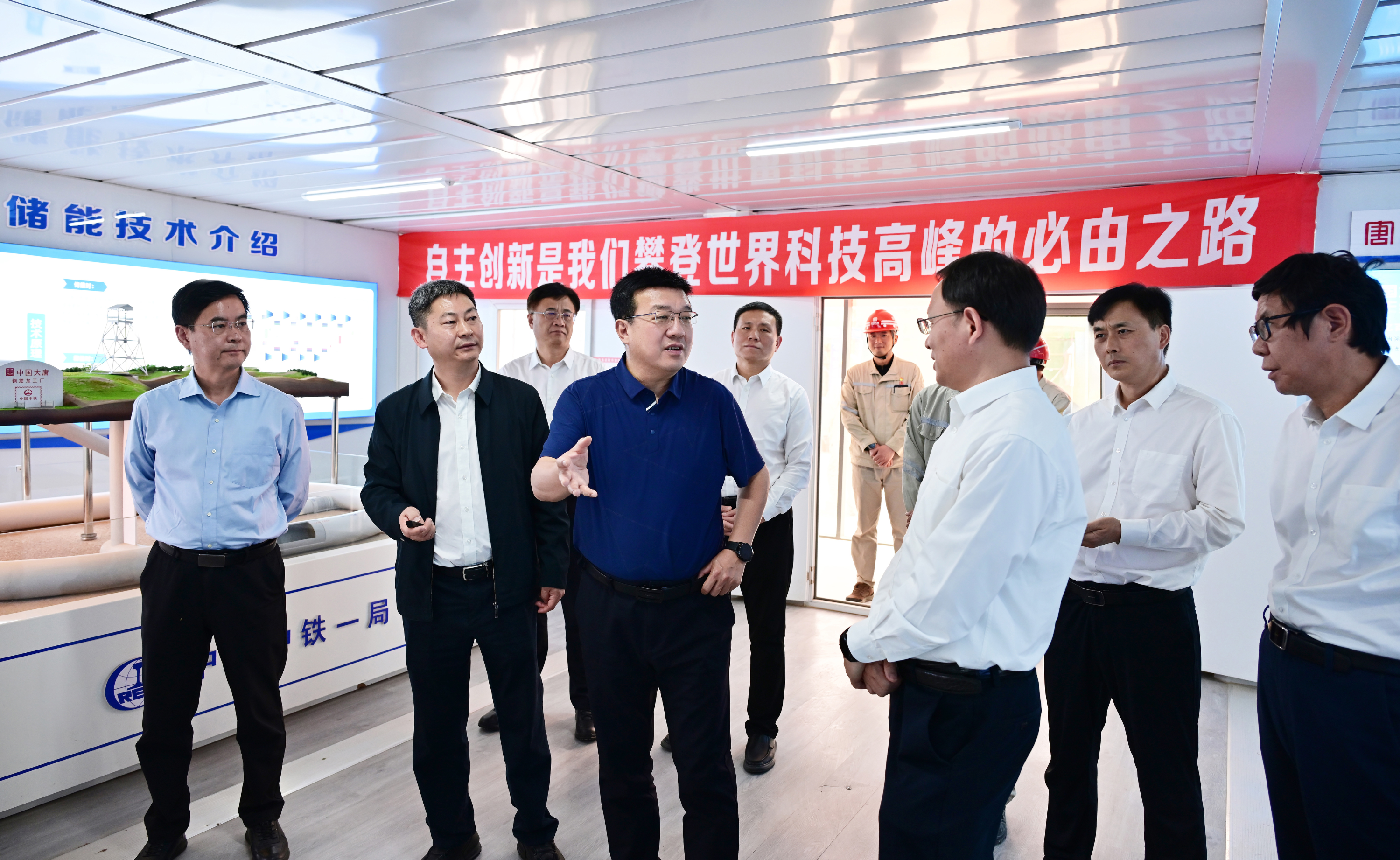 吕军一行首先来到大唐宁夏中宁国际首套百兆瓦级全人工地下储气库压缩空气储能项目建设现场,深入项目主厂房、信息化调度中心以及地下储气库硐口,听取项目介绍,详细了解压缩空气储能技术、施工进度、技术创新等情况。