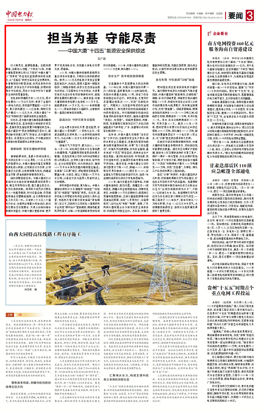 [中国电力报]2026-1-29-3 收官“十四五”|bw必威西汉姆联官方网站:担当为基 保供为魂
