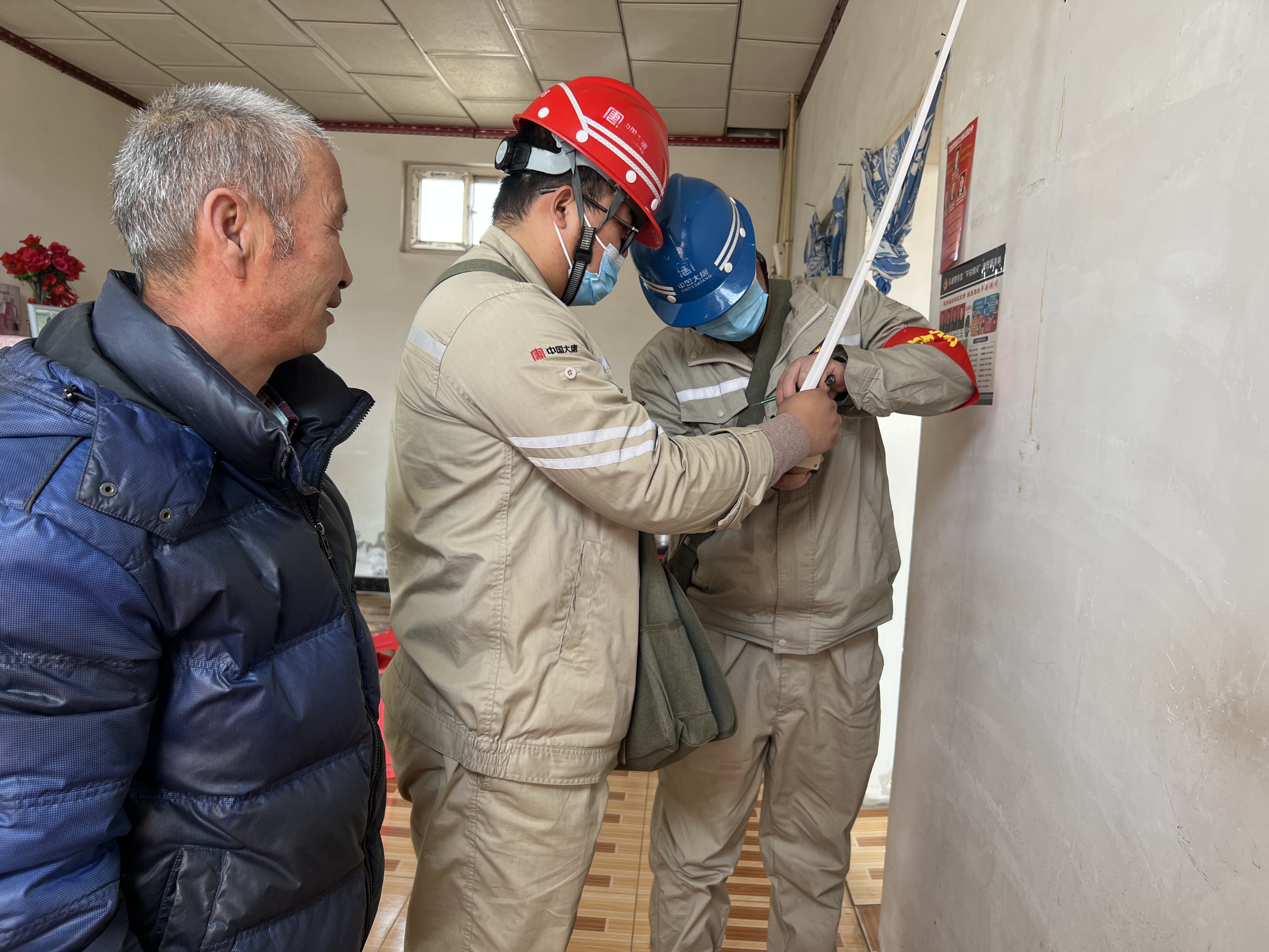 “有的老人因习惯了自己先前的生活,不愿跟随儿女搬迁,就成了独居的空巢老人。”村支部副书记介绍,由于这部分老人独居,线路是否老化不是很清楚,再加上老人安全用电常识的缺乏,极易发生断电或触电可能。“平时我们去老人家里时,看到他们家中的插座和开关都比较旧,很容易因为短路而发生火灾。今天大唐志愿者们来了,真是为老人家解决了用电隐患,我替老人家谢谢你们。”