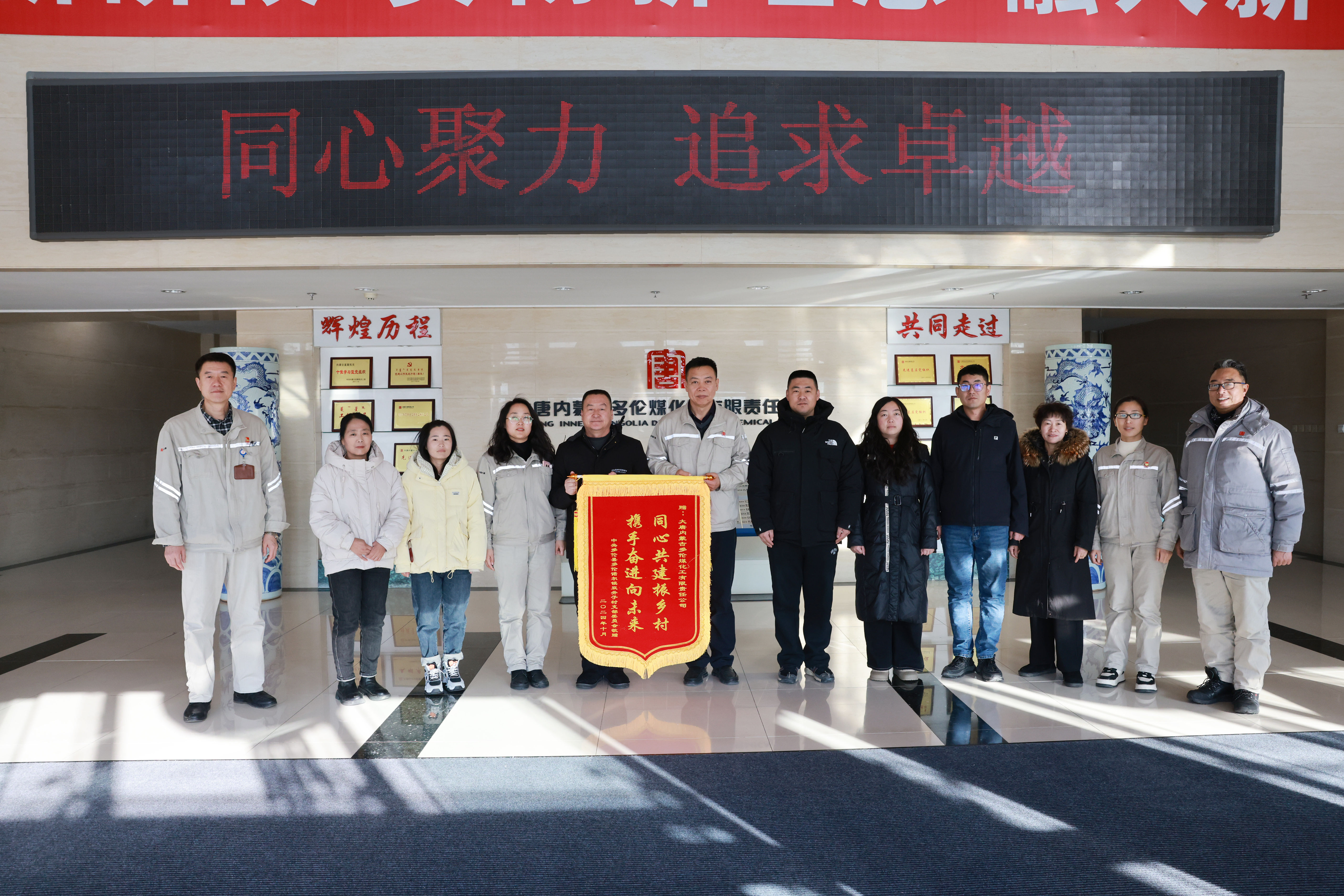 本网讯  1月14日,内蒙古多伦县多伦诺尔镇双井子村“两委”班子成员、包村干部带着全村父老乡亲的重托,为多伦煤化工公司送去了印着“同心共建振乡村,携手奋进向未来”的锦旗,感谢该公司三年多来对该村发展的大力支持。