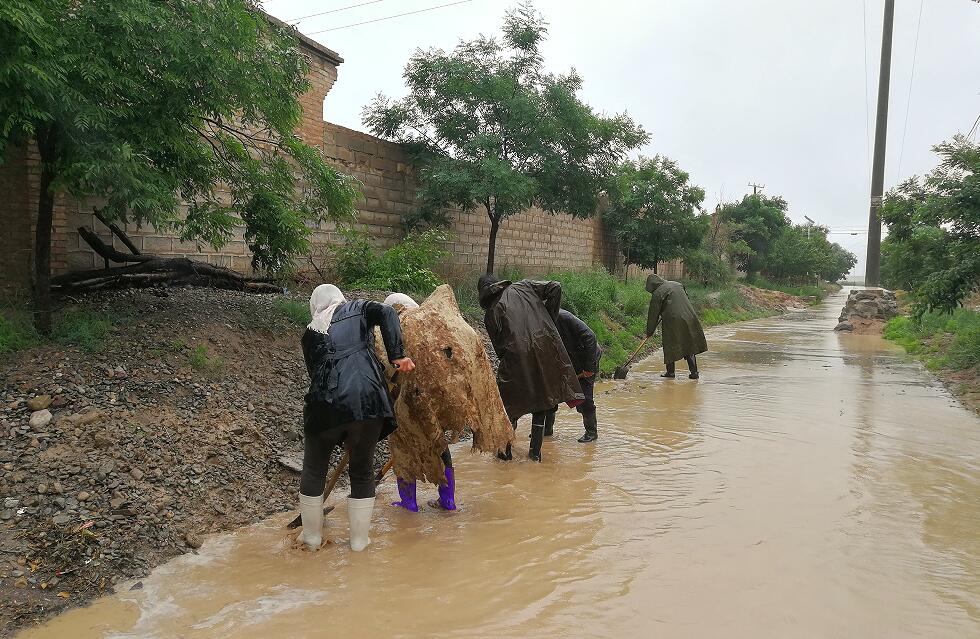 距离黄大妈家20多米处,水就已经没到膝盖。其他好多村民拿着盆子从家里往屋外舀水,但几乎起不到作用,路面上的积水还是不断地往屋里倒灌。我蹚着水走到十字路口,雨水已经没到我的大腿。此时我突然发现这里比别处都低,雨水无法排出,积水从四面全涌过来。我赶紧把黄大妈和其他村民叫了过来,锄头铁锹一起上。挖了半天,总算有一条排水沟。可是,距离较远,水沟还是有点高,只排走了部分积水。
