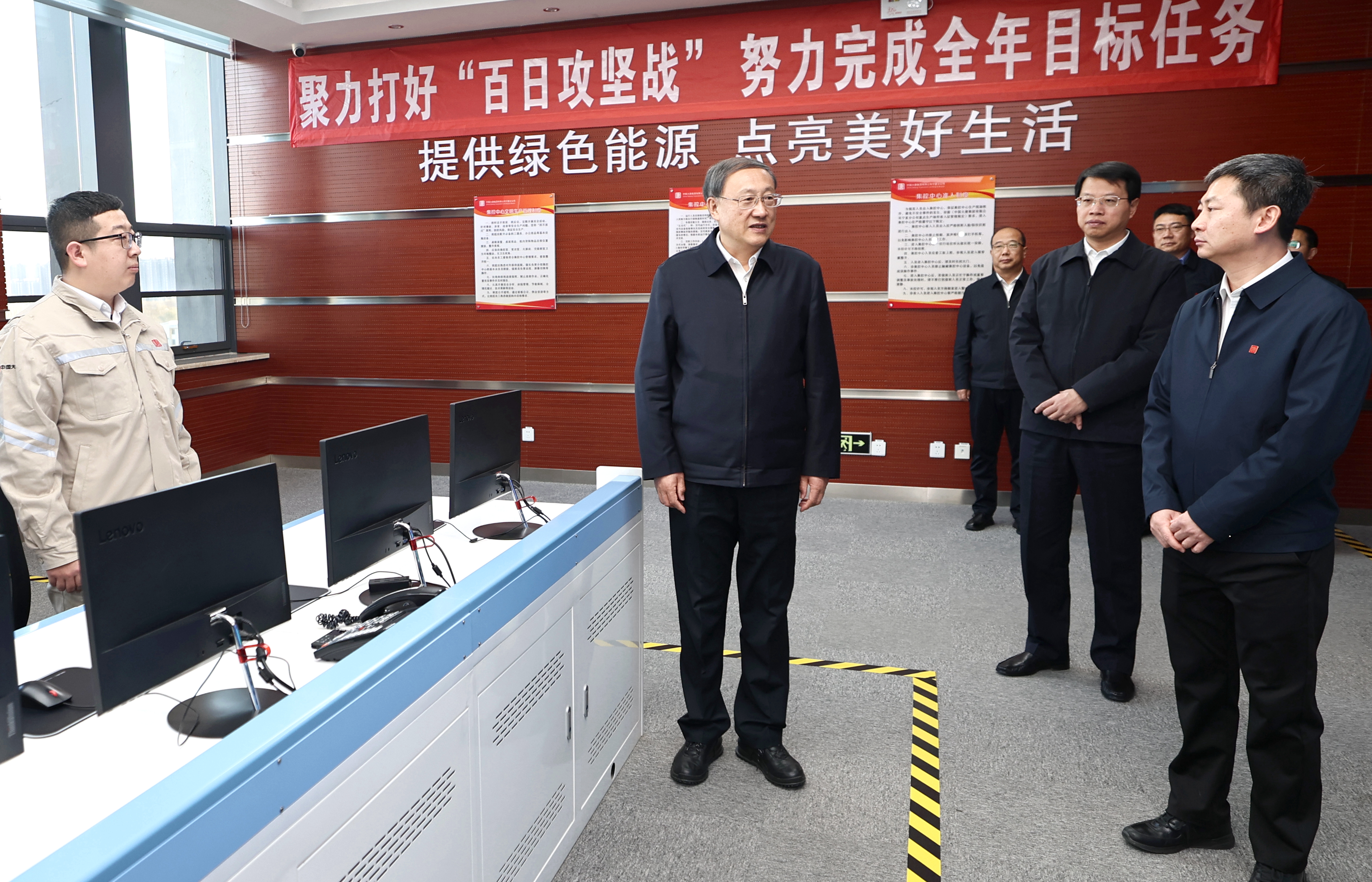 李邑飞一行深入宁夏分公司集控中心,看望慰问干部职工,听取该公司工作汇报,详细了解企业能源项目建设运行情况。