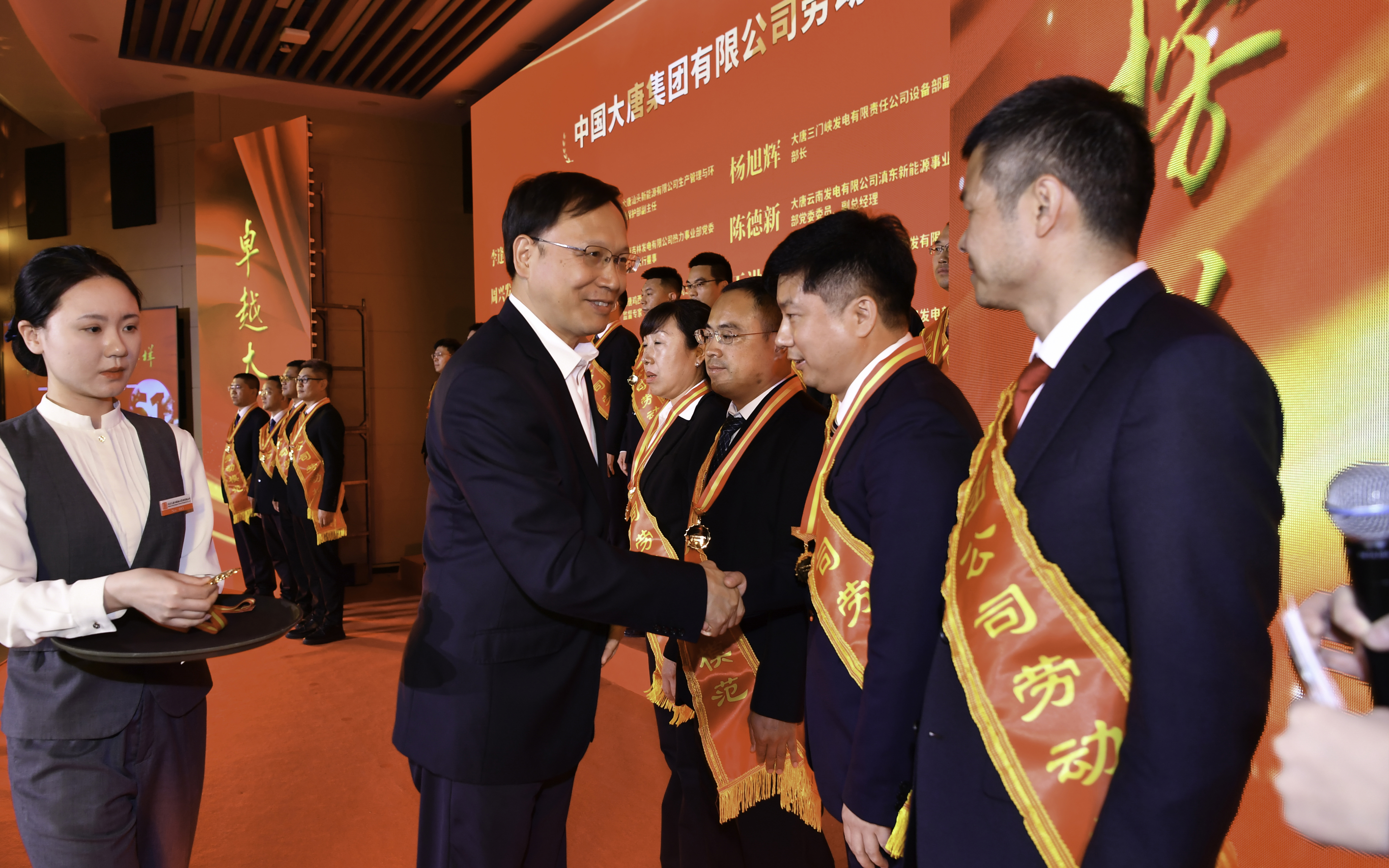 中国能源化学地质工会主席、分党组书记蔡毅德出席表彰宣讲会;集团公司党组书记、董事长吕军出席表彰宣讲会并为全国劳动模范颁发绶带;集团公司董事、总经理、党组副书记张传江出席表彰宣讲会并为集团公司劳动模范颁发奖章;集团公司董事、党组副书记余波主持劳模表彰仪式;集团公司领导王瑛、曲波、李建伟、王海腾,能化工会电力工作部有关同志参加表彰宣讲会。