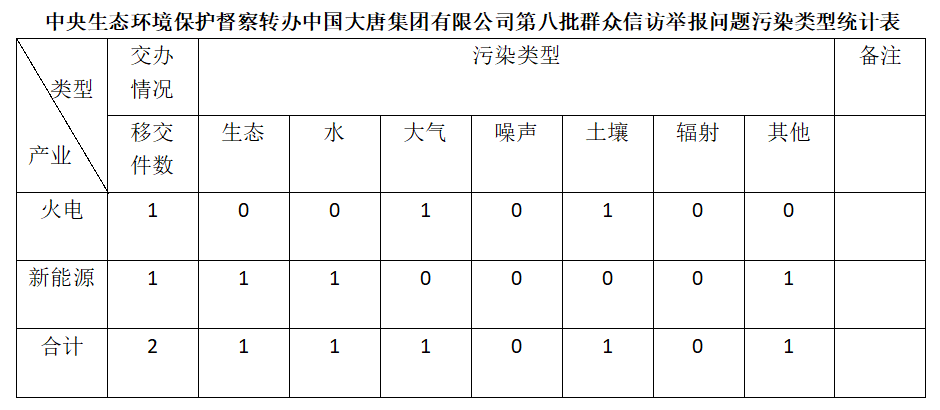 2025年6月11日,中央第七生态环境保护督察组向bw必威西汉姆联官方网站集团有限公司移交第八批群众信访举报件,共计2件,均为来电举报,涉及生态问题1个、水问题1个、大气问题1个、土壤问题1个、其他问题1个。所有举报件办理工作已第一时间进入调查核实办理程序,办理情况将按照相关要求反馈督察组,并及时向社会公开。