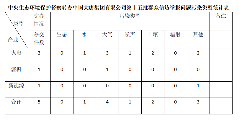 2025年6月21日,中央第七生态环境保护督察组向bw必威西汉姆联官方网站集团有限公司移交第十五批群众信访举报件,共计5件,其中来信举报3件,来电举报2件,涉及水问题1个、大气问题4个、噪声问题1个、土壤问题2个、其他问题3个。所有举报件办理工作已第一时间进入调查核实办理程序,办理情况将按照相关要求反馈督察组,并及时向社会公开。